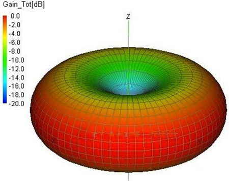 如圖2中,工程師能看到一個高級的三維視圖,指示在預定的面上天線如何運行。然而天線也傾向于在其他軸上改變特性,但通常不提供三維圖形數據,因為這會顯著增加圖表的復雜性。拉桿天線是一個典型的全向天線,它有一個簡單的三維剖面。在平面圖中,拉桿天線能提供極佳的覆蓋,但是在三維圖形中,它們在本身正上方或正下方的表現極差,這有助于我們能更了解天線被放在兩層的室內環境中的情況。