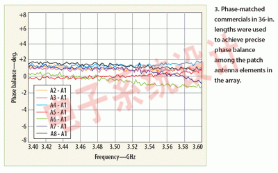 為最小化RF信號損耗并保持諸如相位和幅值等信號屬性,一般要將波束成型網(wǎng)絡(luò)緊挨著天線組件放置或?qū)⑵湔线M天線組件。在本例中,波束成型器被挨著天線放置并采用相位匹配電纜匹配跨接矩陣的相位(見圖2)。這些相位匹配電纜在期望的頻帶范圍提供±1deg.的相位匹配精度。每36英寸電纜長度貢獻的插入損耗小于0.5 dB。